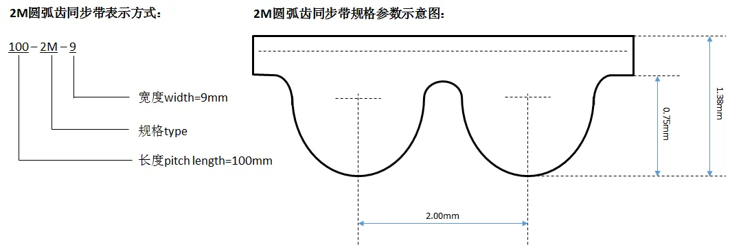 HTD-2M同步帶是(shì)齒距為(wèi)2mm的(de),齒高(gāo)為(wèi)0.75mm,帶高(gāo)為(wèi)1.38mm的(deφ)圓弧齒橡膠同步帶的(de)表示型号,廣泛的(de)應用(yòng)于同步傳動系統中,其圓弧齒的(de∏)設計(jì)相(xiàng)較于梯形齒傳動效率更好(hǎo),更加耐用(yòng),其型号表示通(tōng)常為(wèi)XXX(長(cháng)度)-2♥M-XX(寬度)。